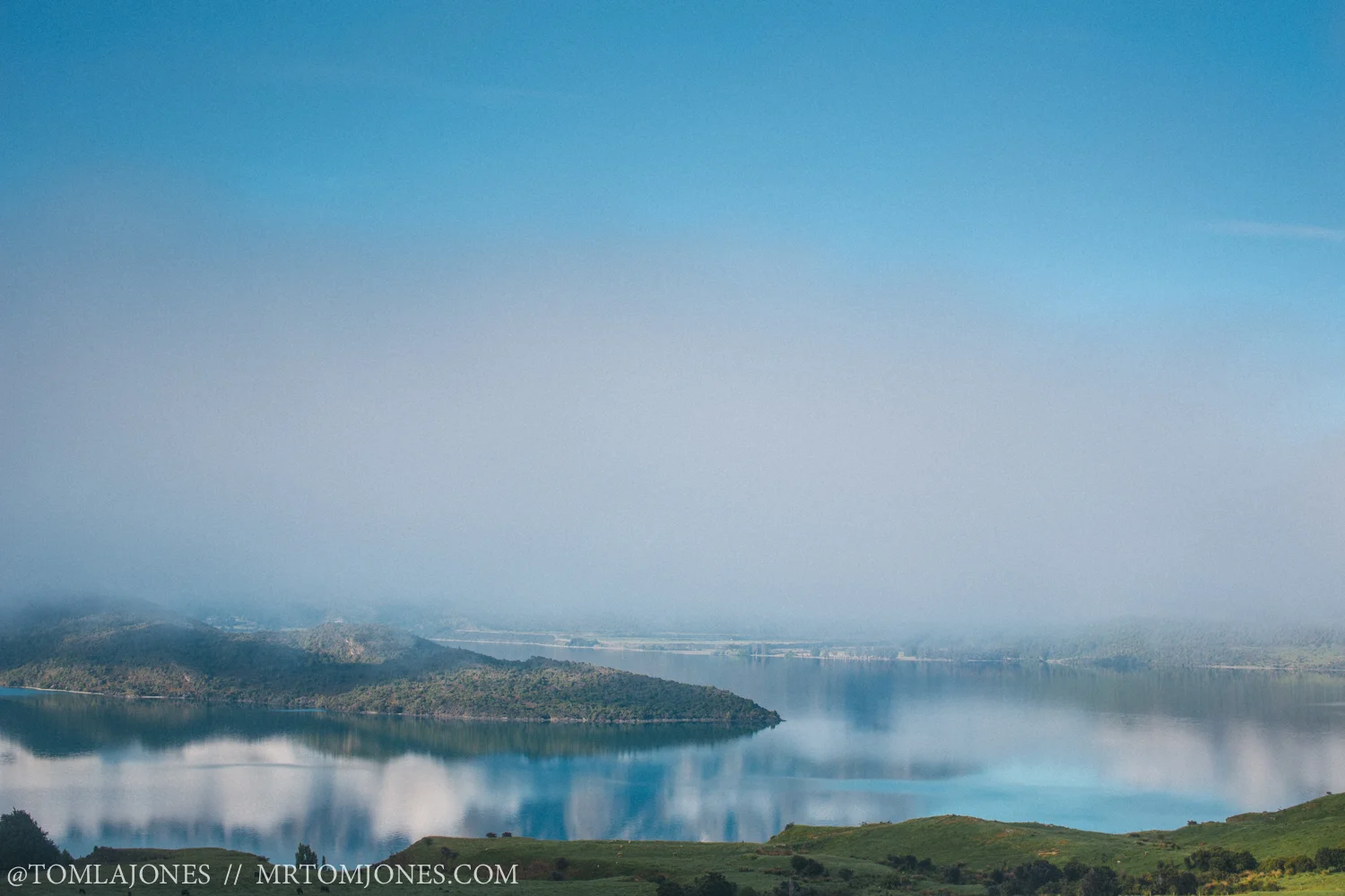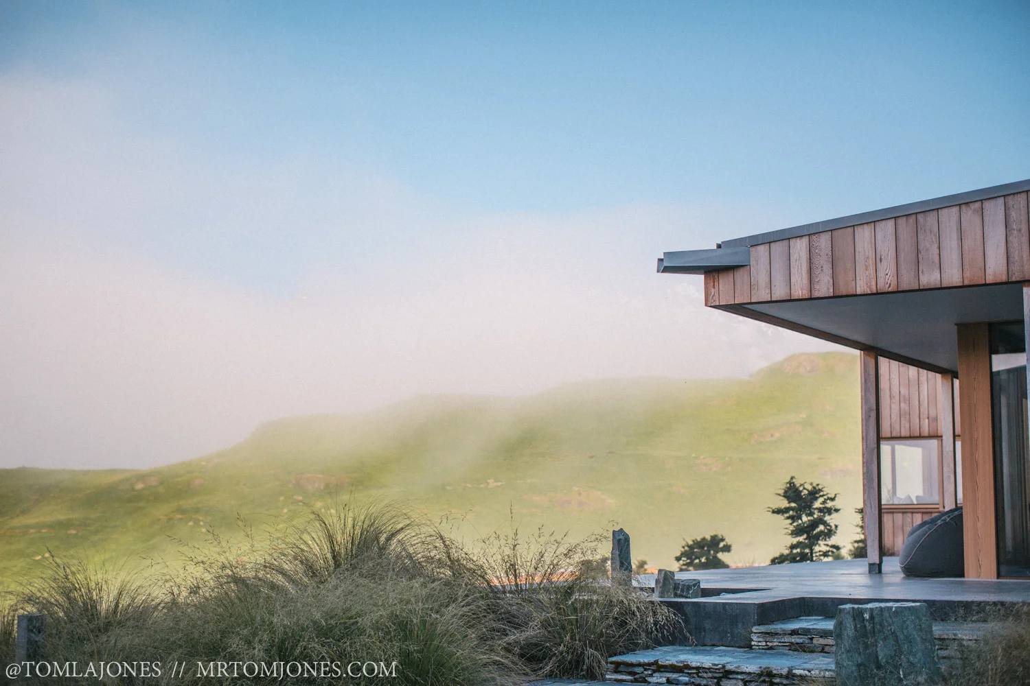 The early morning clouds lift above Lake Wakatipu; the view from Aro Ha’s yoga studio.