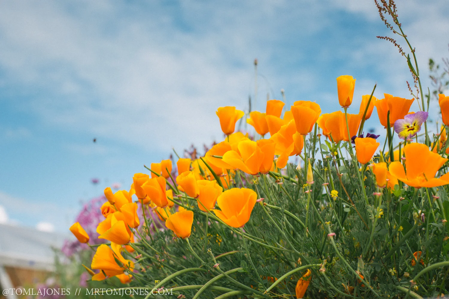 Edible flower garden beside the Aro Ha kitchen adds colour and flavour to everything they serve.