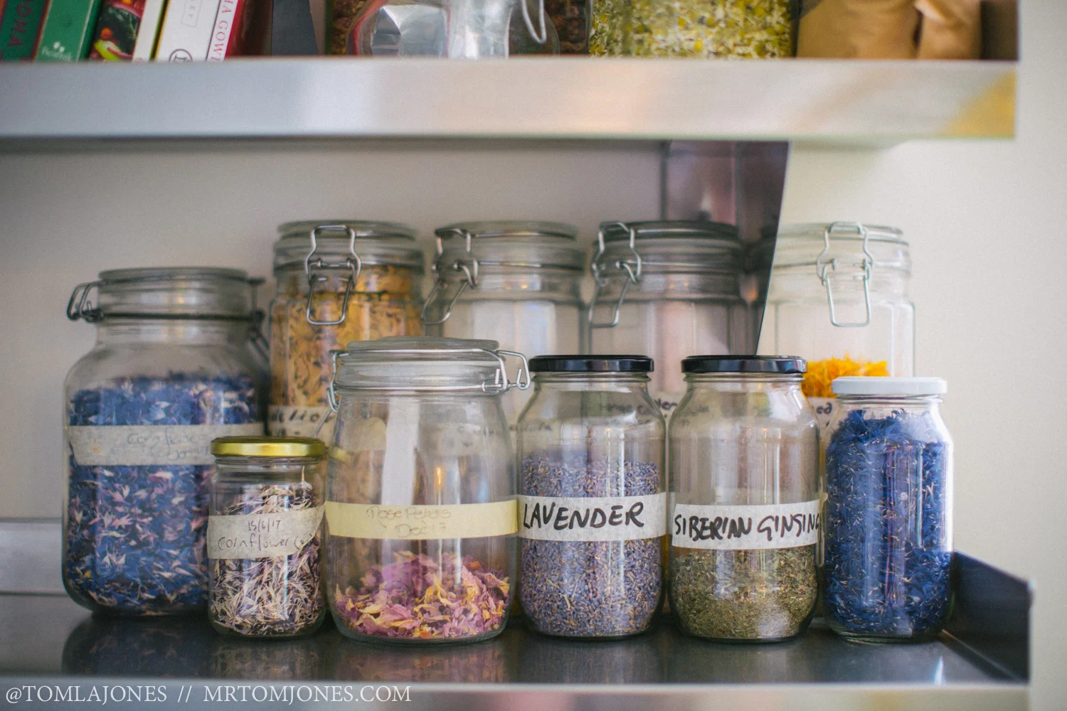No shortage of homegrown and dried teas and herbs in the kitchen.